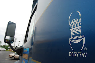 This past weekend at the GeoWoodstock VII event in Bell Buckle, Tenn. (my first-found personal cache, let it be known, an “event cache” the 3.5-inch Teletype WorldNav GPS navigator led me to without flaw), I got to meet one of the biggest trackable “travel bugs” out there. Pictured, it’s the Freightliner driven by Wisconsin-based D.J. Christie and Frank Williams, TwoTruckers on Geocaching.com and GroundSpeak, veteran geocachers. If you’re unfamiliar with the activity, geocaching I’ve heard best described by Arkansas-based FWCC driver Mark Pritchard as a “worldwide easter egg hunt with GPS units.”