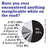 In the Channel 19 column upcoming in the October Overdrive, with a version of the Bigfoot post we ran results of a recent poll of etrucker.com readers (pictured) that detailed truckers’ experience with the supernatural on the road — the most surprising conclusion was perhaps the 5 percent of respondents who’d seen a “>Bigfoot or other mystery critter” out there. Tell us what you’ve seen: [email protected].